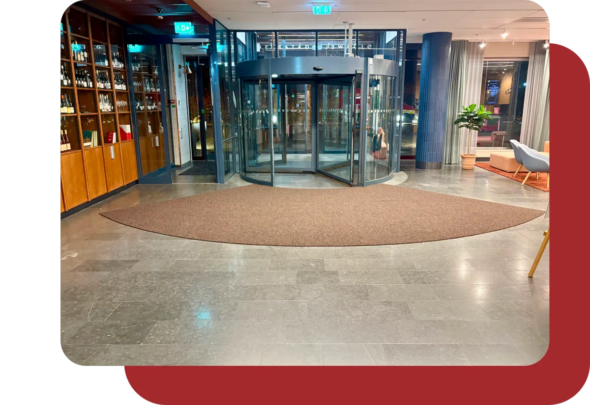 Istället för traditionella hyrmattor bygger vi skräddarsydda entrésystem som håller i 5–10 år och minskar både smuts, slitage och onödiga kostnader.